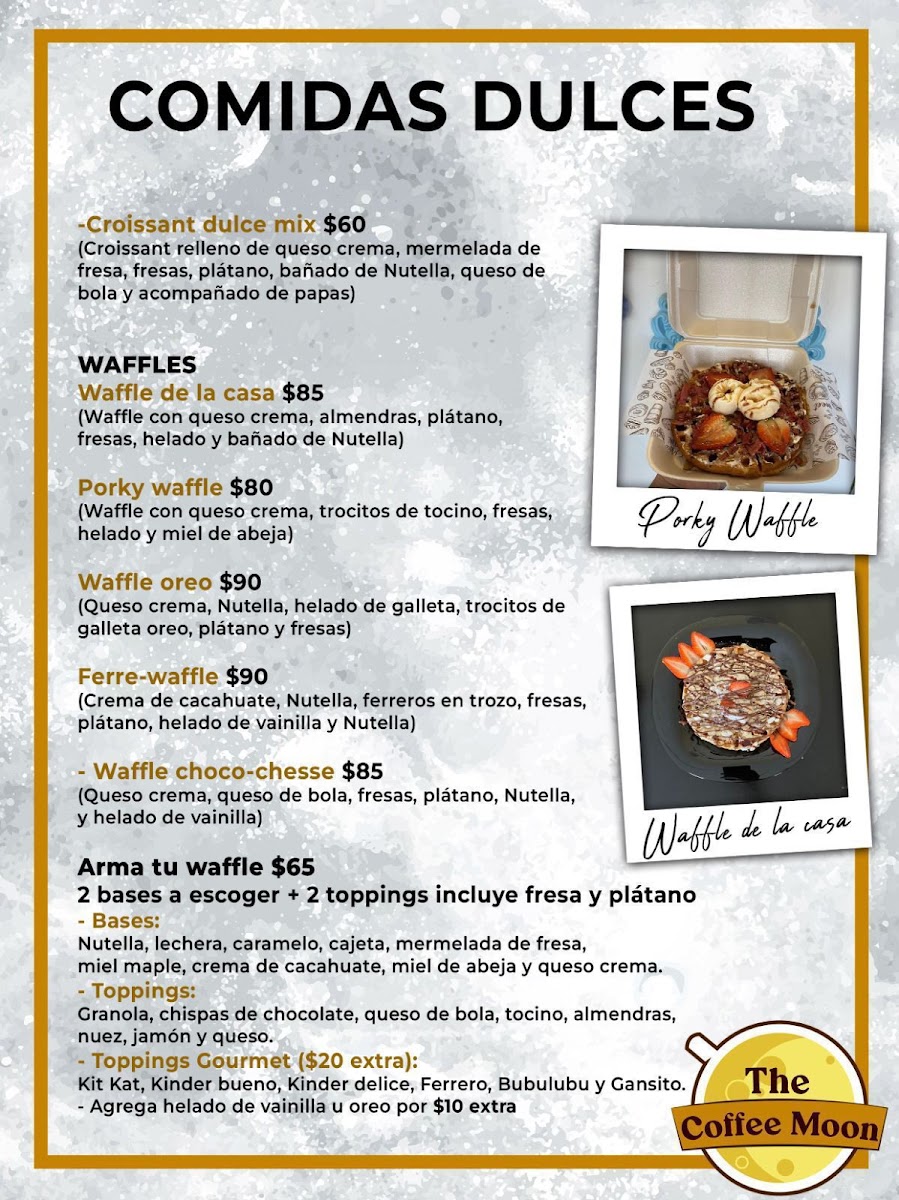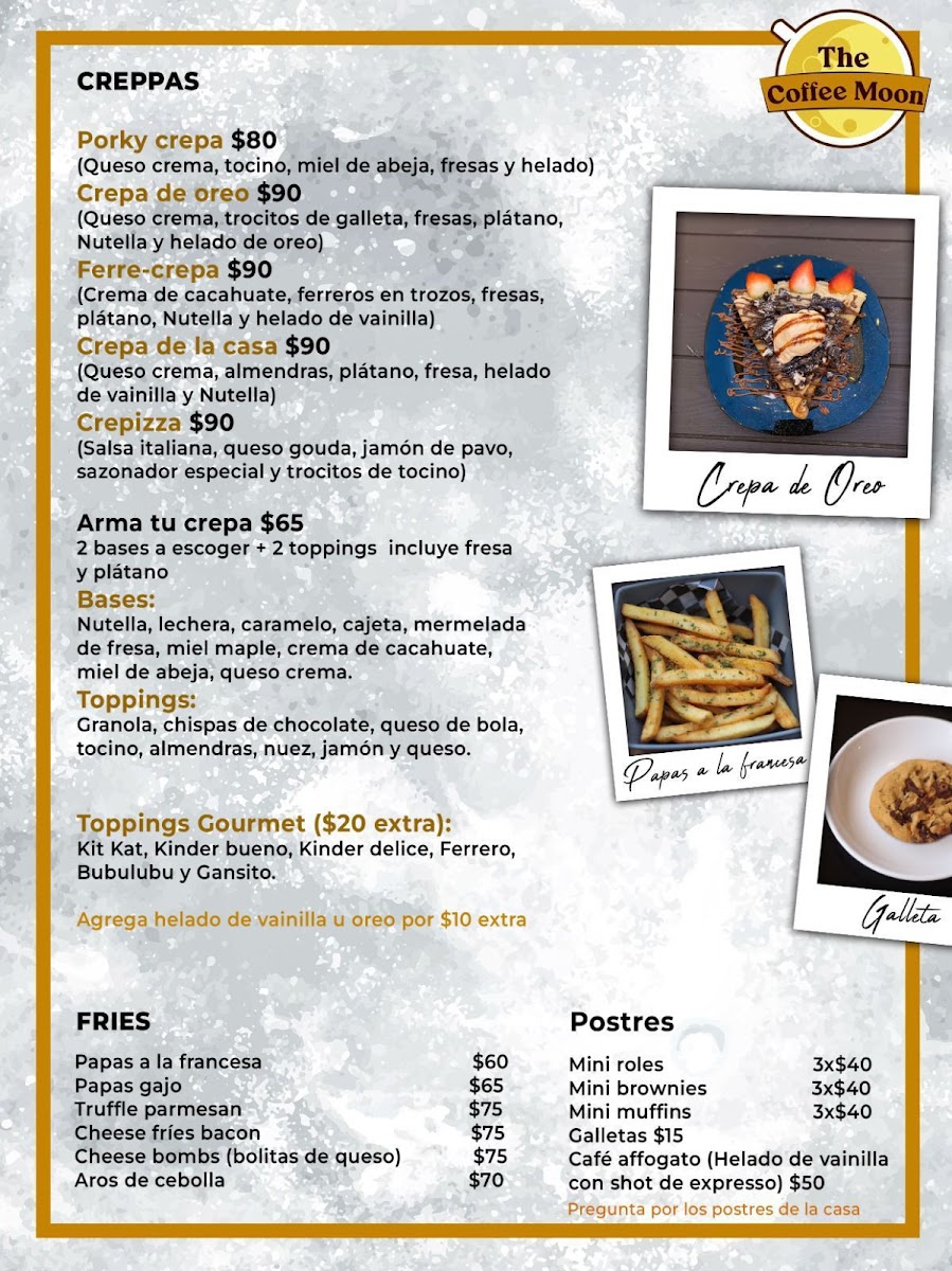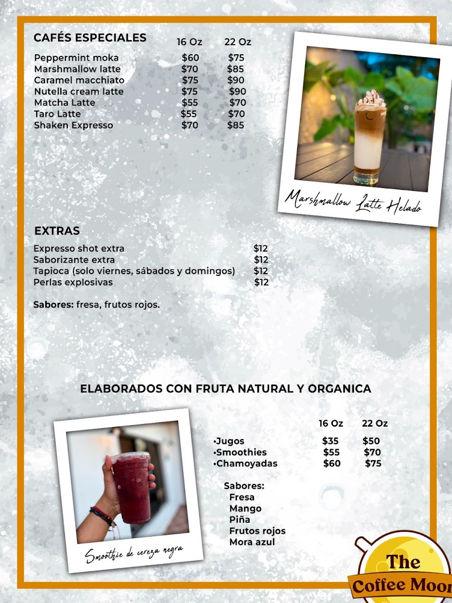 The menu at The Coffee Moon Tekax offers a variety of options suitable for different times of the day, including breakfast, coffee breaks, and light meals. Guests can expect a selection of hot and cold coffee beverages, along with other drinks and a range of light food items.